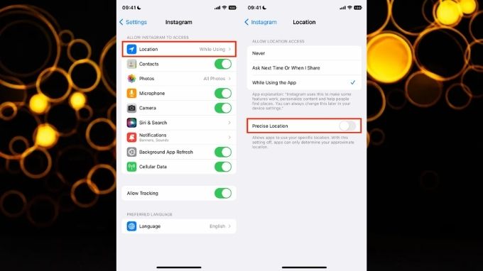 Mở ứng dụng Cài đặt, chọn một ứng dụng (ví dụ Instagram), nhấn vào Vị trí rồi tắt tùy chọn Vị trí Chính xác. Khi tùy chọn này bị tắt, ứng dụng chỉ biết được vị trí tương đối của người dùng, trong bán kính vài dặm.