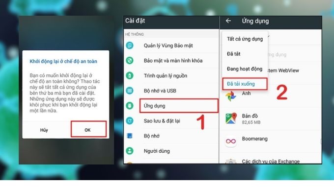 Bước 2: Nhấn và giữ nút nguồn khoảng 1 đến 2 giây cho tới khi hiện ra “Chế độ an toàn” > Chọn “OK”. Lúc này thiết bị sẽ được khởi động lại và ở trong chế độ an toàn.