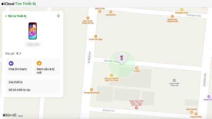 Bước 4: Tại đây, địa điểm của thiết bị sẽ được hiển thị với các tùy chọn như: