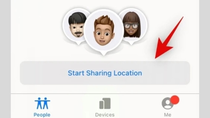 Bước 2: Sau đó chọn mục People (Người) > Chọn Start Sharing Location (Bắt đầu chia sẻ vị trí)