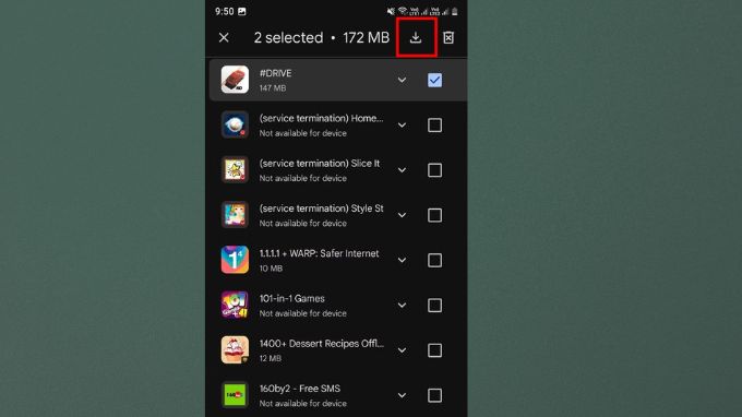 Bước 4: Tìm ứng dụng cần khôi phục, tick chọn và nhấn vào nút tải ở trên. Bạn có thể khôi phục cùng lúc nhiều ứng dụng đã xóa trên điện thoại.