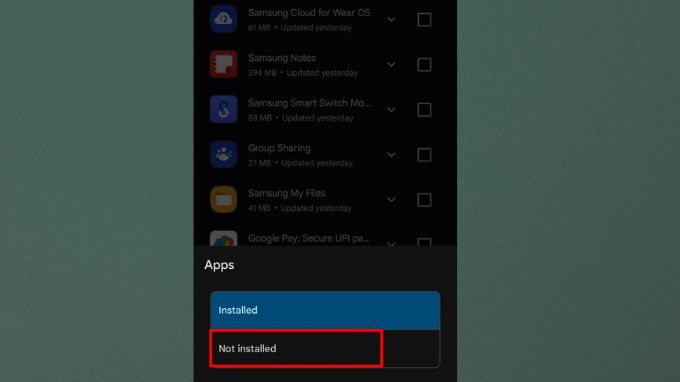 Bước 3: Nhấn vào mục Chưa cài đặt để xem danh sách ứng dụng bạn đã từng cài đặt trước đó.
