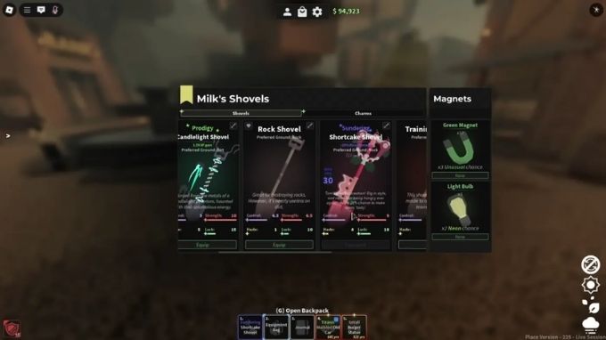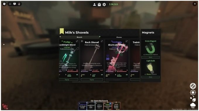 Ngay từ những bước đầu tiên, người chơi Dig Roblox cần xác định công cụ khai thác phù hợp để tối đa hóa năng suất. Xẻng là thiết bị không thể thiếu trong quá trình đào bới. Ở giai đoạn khởi đầu, các loại xẻng cơ bản như Training Shovel hoặc Toy Shovel sẽ là lựa chọn hợp lý về chi phí.