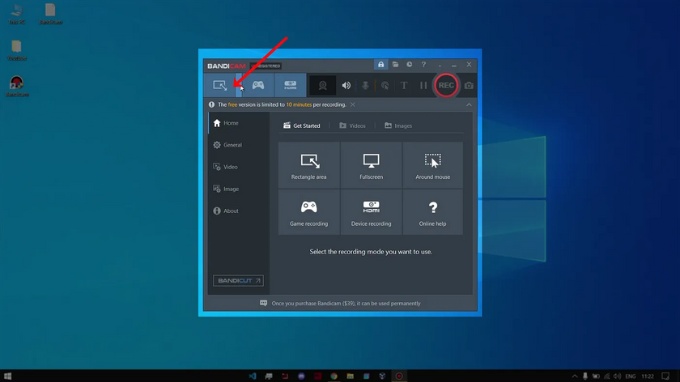 Bước 1: Tải và cài đặt Bandicam từ trang web chính thức, sau đó mở phần mềm.