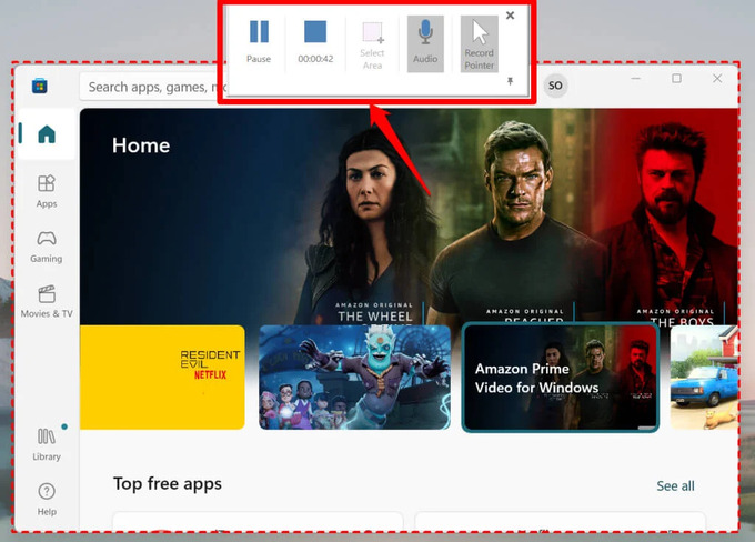 Bước 5: Để tạm dừng, nhấn nút Pause hoặc di chuyển chuột ra khỏi khu vực quay để hiển thị lại thanh công cụ. Kết thúc quay bằng cách nhấn Windows + Shift + Q hoặc nút Stop.