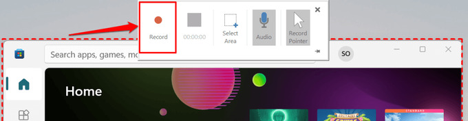 Bước 3: Nhấn nút Start Recording (biểu tượng hình tròn với chấm tròn đen ở giữa) để bắt đầu quay màn hình. Ngoài ra, bạn có thể sử dụng tổ hợp phím Windows + Alt + R để kích hoạt nhanh chức năng này.