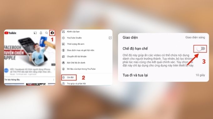 Bước 4: Tắt công tắc Chế độ hạn chế của YouTube.