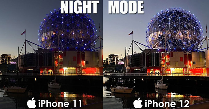 Chế độ chụp đêm (Night Mode) trên iPhone 12 được cải tiến đáng kể so với phiên bản iPhone 11 cũ tiền nhiệm. Công nghệ này cho phép máy ảnh tự động nhận diện điều kiện ánh sáng yếu và kích hoạt chế độ chụp đêm, giúp thu sáng tốt hơn và giảm thiểu nhiễu ảnh. Với các cải tiến mới, chế độ chụp đêm trên iPhone 12 có thể thu sáng trong thời gian dài hơn, lên tới 30 giây, mang đến chất lượng ảnh tuyệt vời ngay cả trong điều kiện ánh sáng yếu.