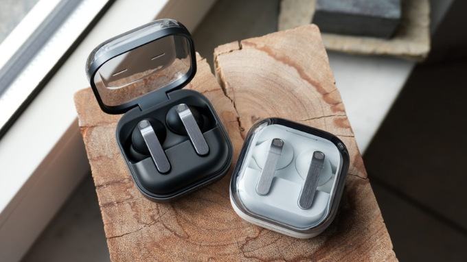 Hộp sạc cũng được làm mới với thiết kế vuông đứng thay vì dạng chữ nhật nằm ngang như trước. Nắp hộp sử dụng chất liệu nhựa trong suốt, cho phép quan sát tai nghe bên trong mà không cần mở, tạo cảm giác như một món phụ kiện công nghệ mang tính trưng bày cao. Phần thân hộp được phủ lớp nhám mờ giúp hạn chế bám vân tay, trong khi đáy hộp được làm phẳng để tăng độ ổn định khi đặt trên bề mặt.