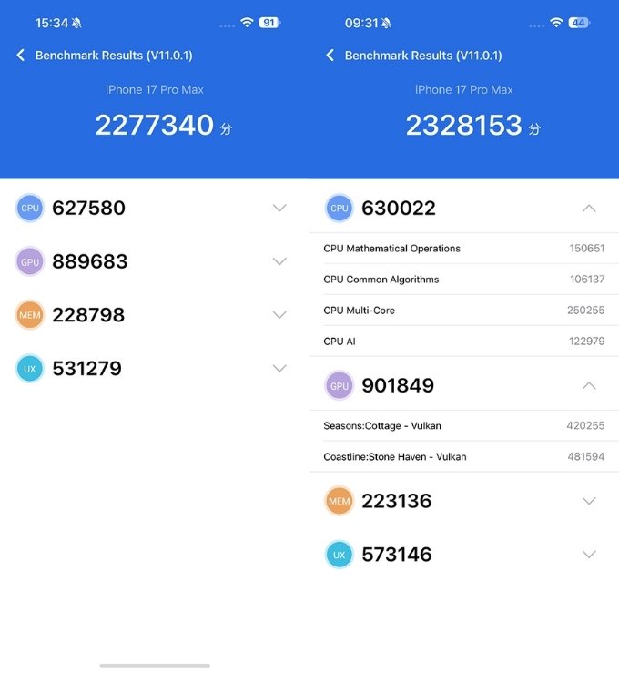 Nếu nhìn vào điểm số benchmark, iPhone 17 Pro Max đạt khoảng 2.27 triệu điểm AnTuTu trên iOS 26.4, thấp hơn một chút so với phiên bản trước. Tuy nhiên, sự chênh lệch này không thể hiện rõ trong quá trình sử dụng thực tế.