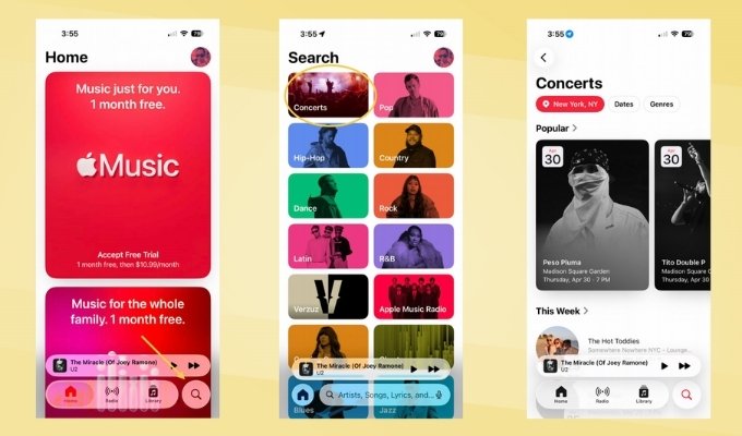 Ngoài ra, Apple cũng bổ sung tính năng Concerts, giúp gợi ý các buổi biểu diễn gần vị trí dựa trên thói quen nghe nhạc. Tính năng này hữu ích với những ai thường xuyên theo dõi nghệ sĩ hoặc sự kiện âm nhạc.