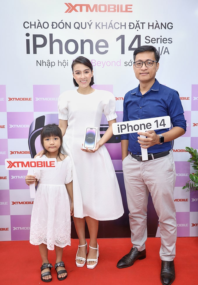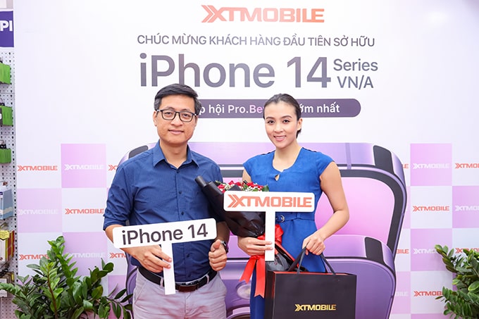 Diễn viên Hoa Di Linh trong ngày đầu mở bán iPhone 14 series VN/A tại XTmobile.