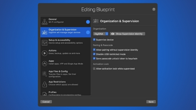 - Blueprints: Tạo cấu hình hàng loạt với các thiết lập như giám sát, MDM, cài đặt ứng dụng, hình nền, hoặc khôi phục sao lưu. Blueprints được mã hóa AES và có thể xuất/nhập an toàn.