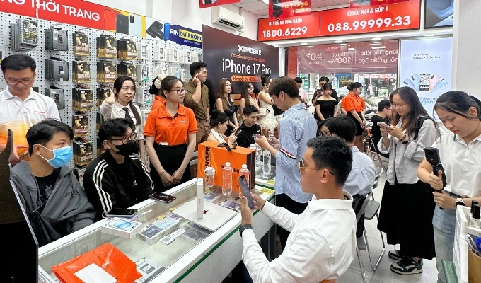 XTmobile, với 7 cửa hàng trải rộng tại TP.HCM và Đồng Nai, đã chuẩn bị kỹ lưỡng cho ngày mở bán iPhone. Từ sáng sớm, 666-668 Lê Hồng Phong (Quận 10) hay 396 Nguyễn Thị Thập (Quận 7) đã chật kín khách hàng. Các mẫu iPhone 17, bao gồm iPhone 17, iPhone 17 Pro, iPhone 17 Pro Max và phiên bản mới iPhone Air, được trưng bày nổi bật với đầy đủ màu sắc và dung lượng lưu trữ.