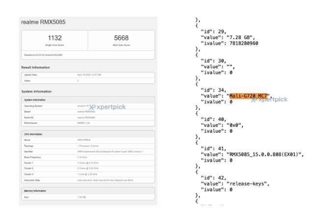 Danh sách trên Geekbench đã hé lộ thông tin về một thiết bị mang mã số RMX5085, được cho là Realme GT 7T. Mặc dù tên gọi chính thức chưa được xác nhận, các chi tiết về CPU và GPU trong danh sách này cho thấy thiết bị sẽ sử dụng chip MediaTek Dimensity 8400. Đây là một con chip tầm trung mạnh mẽ, mang lại hiệu suất ổn định cho cả các tác vụ hàng ngày lẫn những tựa game đòi hỏi đồ họa cao.