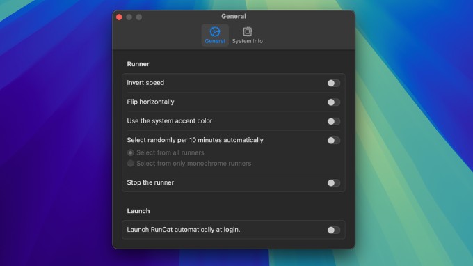 - Để đảm bảo RunCat luôn hoạt động mượt mà, hãy bật tùy chọn “Launch at login” và cập nhật macOS thường xuyên.
