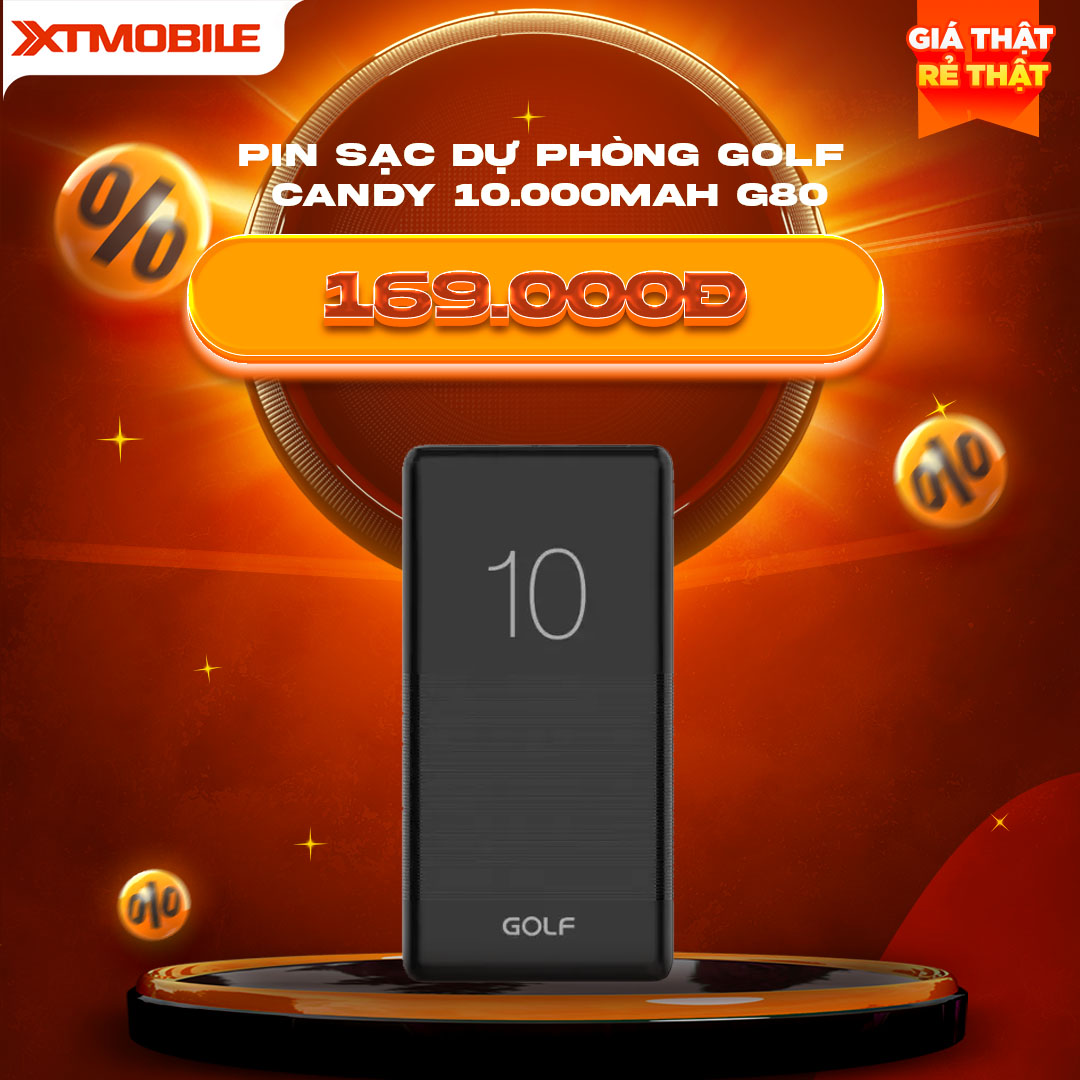 - Pin sạc dự phòng Golf Candy 10.000mAh G80 giảm đến 50%, giá chỉ còn 169.000đ (giá niêm yết