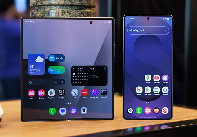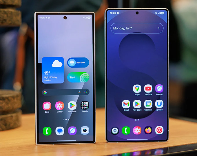 Dù mang hình bóng đặc trưng, thiết kế hình hộp được làm mới năm nay vẫn mang lại cảm giác vừa quen thuộc vừa hiện đại. Với độ dày 8,2 mm, S25 Ultra có thể hơi dày so với các mẫu điện thoại thông thường, nhưng điều này hoàn toàn có thể bỏ qua khi xét đến công nghệ cao cấp mà nó tích hợp. Trong khi đó, Samsung Z Fold 7 được tối ưu đáng kể về độ mỏng, chỉ còn 8,9 mm khi gập lại, và giảm vài gram xuống còn 215 gram.