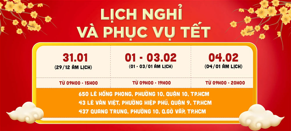 Lịch phụ vụ tết 2022 chi tiết tại các cửa hàng TPHCM