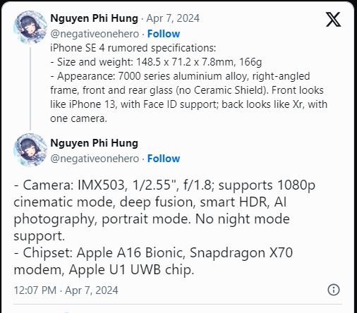 Thông số kỹ thuật iPhone SE 4 xuất hiện đầy hứa hẹn.