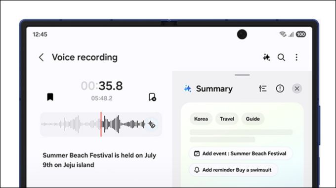 Không dừng lại ở đó, Galaxy AI còn tích hợp Transcript Assist - công cụ hỗ trợ ghi âm và tự động chuyển giọng nói thành văn bản. Sau khi phiên âm, AI sẽ giúp bạn sắp xếp lại nội dung thành ghi chú gọn gàng và tạo bản tóm tắt rõ ràng. Thậm chí, Galaxy AI còn đủ thông minh để đề xuất lịch hẹn hoặc nhắc việc dựa trên nội dung cuộc họp của bạn, biến Z Fold 7 trở thành một “trợ lý làm việc” đúng nghĩa.