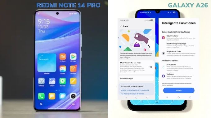 Chi tiết so sánh Xiaomi Redmi Note 14 Pro và Samsung Galaxy A26